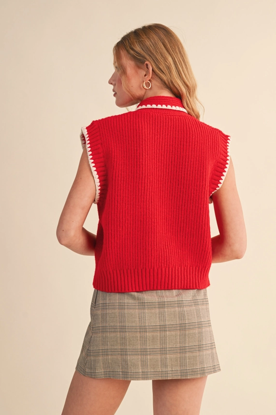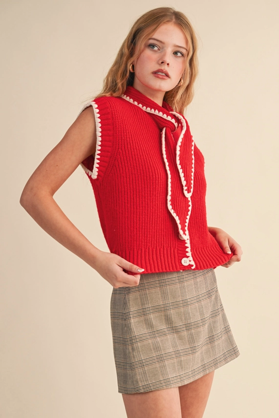 &MERCI | Tie Neck Sweater Vest with Contrast Blanket Stitch