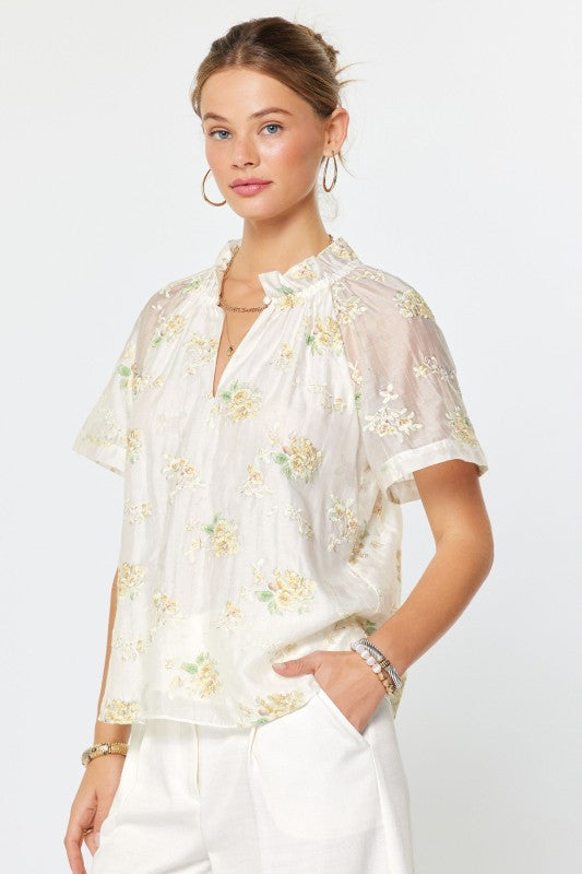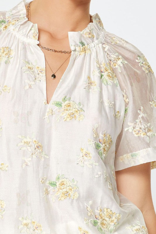 Current Air | Floral Embroidered Short Sleeve Blouse