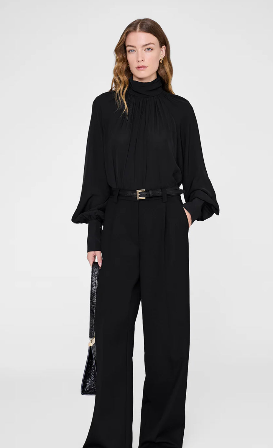 The Lison Jacket blends utilitarian structure with refined elegance, offering a balance of functionality and elevated style. Designed with a pleated hem, contrasting buttoned strips, and a full zip front, it delivers thoughtful detailing throughout. The belted waist shapes the silhouette, while the convertible collar and drop shoulders create a relaxed yet tailored look—versatile enough for everyday wear and refined enough for dressed-up moments.