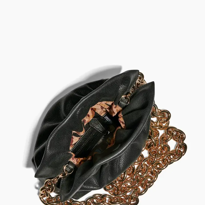 Regular price $208.00 Save $0.00The Chain Handheld Crossbody in Wildcat Haircalf is a fierce yet refined statement piece designed to elevate any night-out look. Featuring an oversized chain handle for bold impact, this compact silhouette is crafted from luxurious haircalf with soft leather ruching that adds texture and sophistication. A removable, adjustable crossbody strap lets you switch from handheld chic to hands-free convenience, making it the perfect blend of fashion, function, and after-dark attitude.