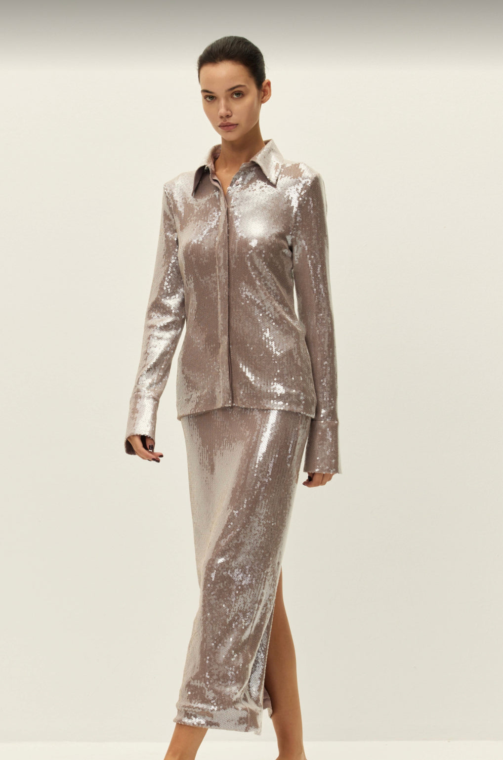 A long-sleeve maxi dress with seductive appeal. The Theodora is an elegant Grecian silhouette, complete with draping and ruching down the sides and left shoulder. An asymmetrical hemline adds to the allure. Pair with strappy heels and statement jewelry.