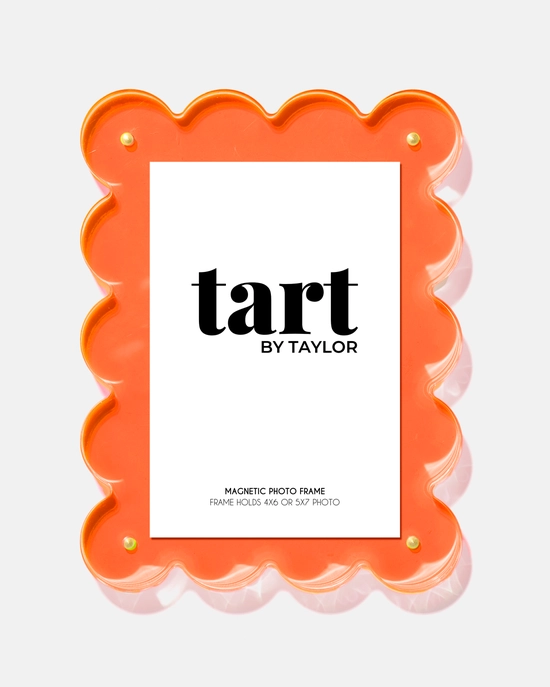 Display your favorite photos in style with this neon orange print acrylic picture frame! It features a magnetic border to securely hold your cherished pictures as well as adding a stylish touch. Perfect for giving your home a fun and unique look!