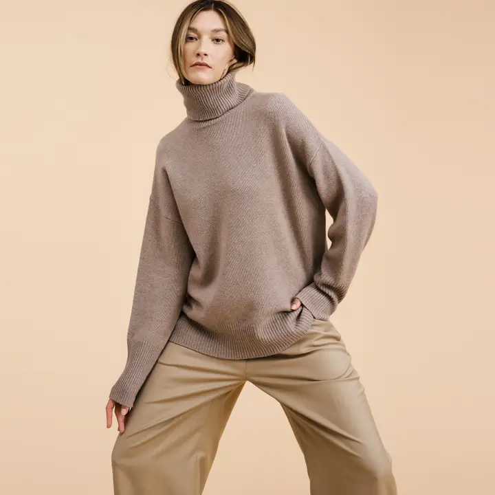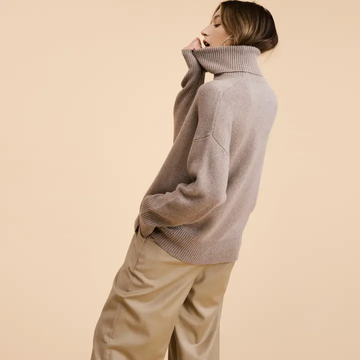The timeless turtleneck design and long sleeves create a sophisticated silhouette perfect for layering or wearing on its own during cooler seasons. Each piece is hand-washable, ensuring lasting quality and a beautifully soft texture with wear after wear.