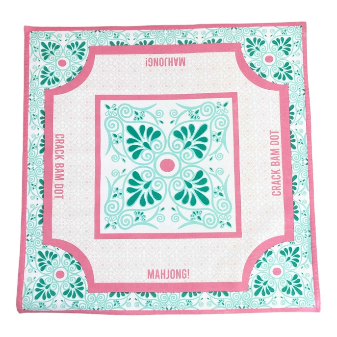 Elevate your game nights with this cotton mahjong mat, designed to combine style, practicality, and a playful aesthetic. The mat features two printed tile designs, one in soothing green hues and one in soft pink, bringing a vibrant and contemporary twist to the classic game. Its large surface provides a smooth, durable space perfect for arranging tiles, ensuring an enjoyable and organized gameplay experience.